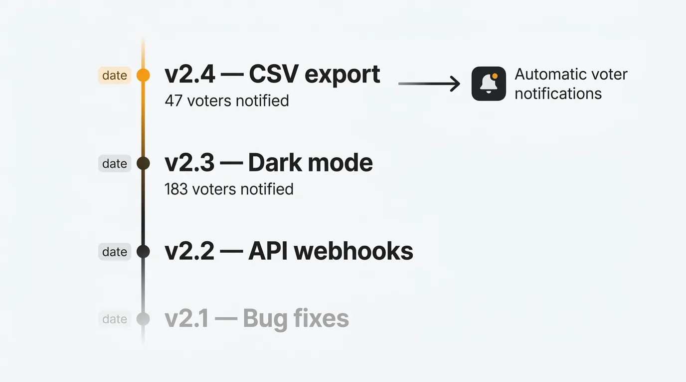 - Changelog fully integrated with feedback boards, voting, and roadmap