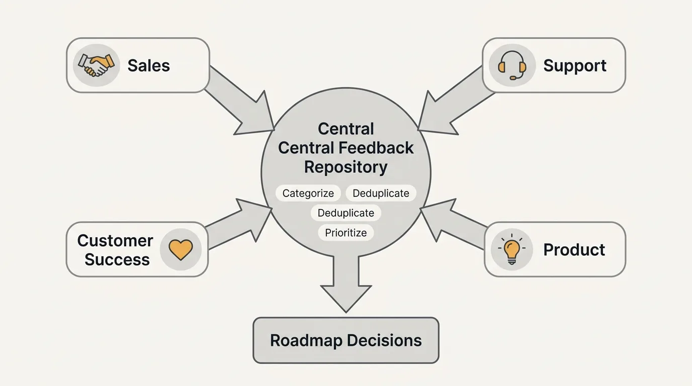 A feedback tool helps by making demand visible and quantifiable. Instead of "sales says customers want X," you have "47 customers representing $2.3M in ARR have requested X, with 12 of those flagged as at-risk renewals." Data does not eliminate politics, but it grounds the conversation.
