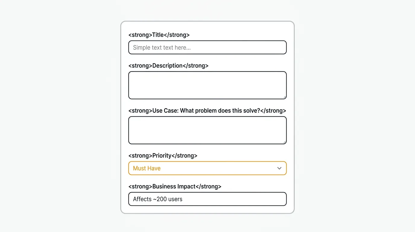 Without a standard format, every request looks different. Some include a detailed use case. Others are a single sentence. The inconsistency makes it impossible to compare requests fairly or estimate their impact.