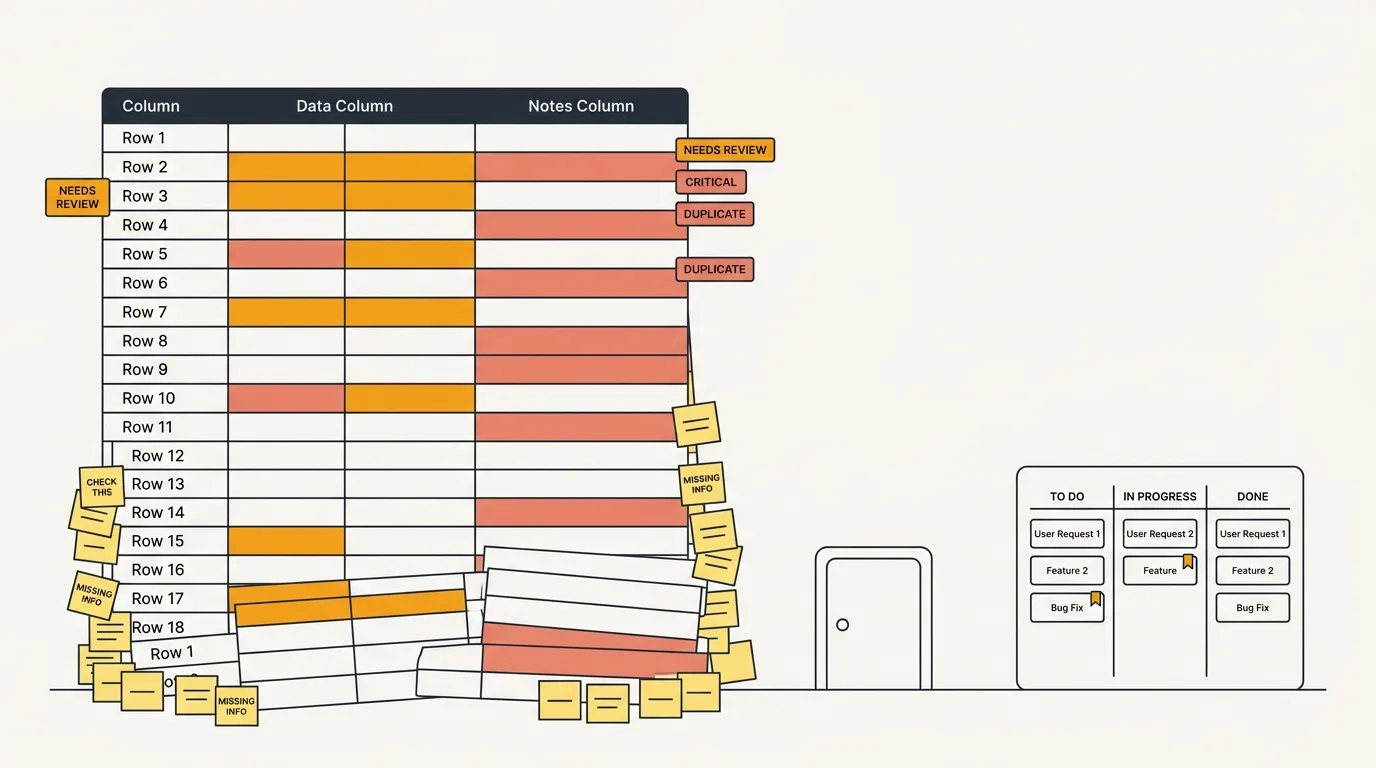 Every product team starts the same way. Someone creates a spreadsheet, names it "Feature Requests," and shares it with the team. It works. For a while.