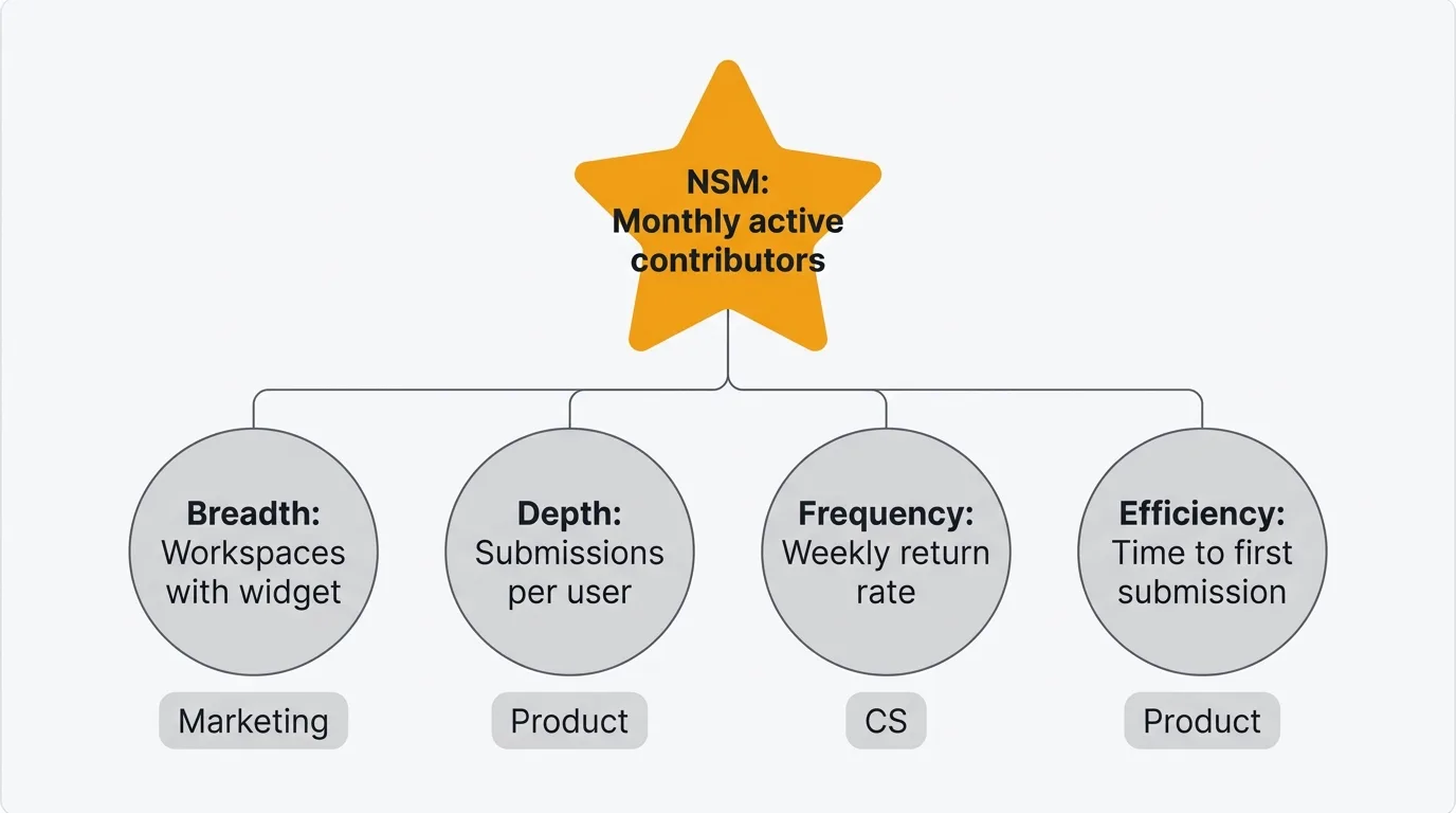 - NSM: Monthly active feedback contributors (users who submit, vote, or comment)