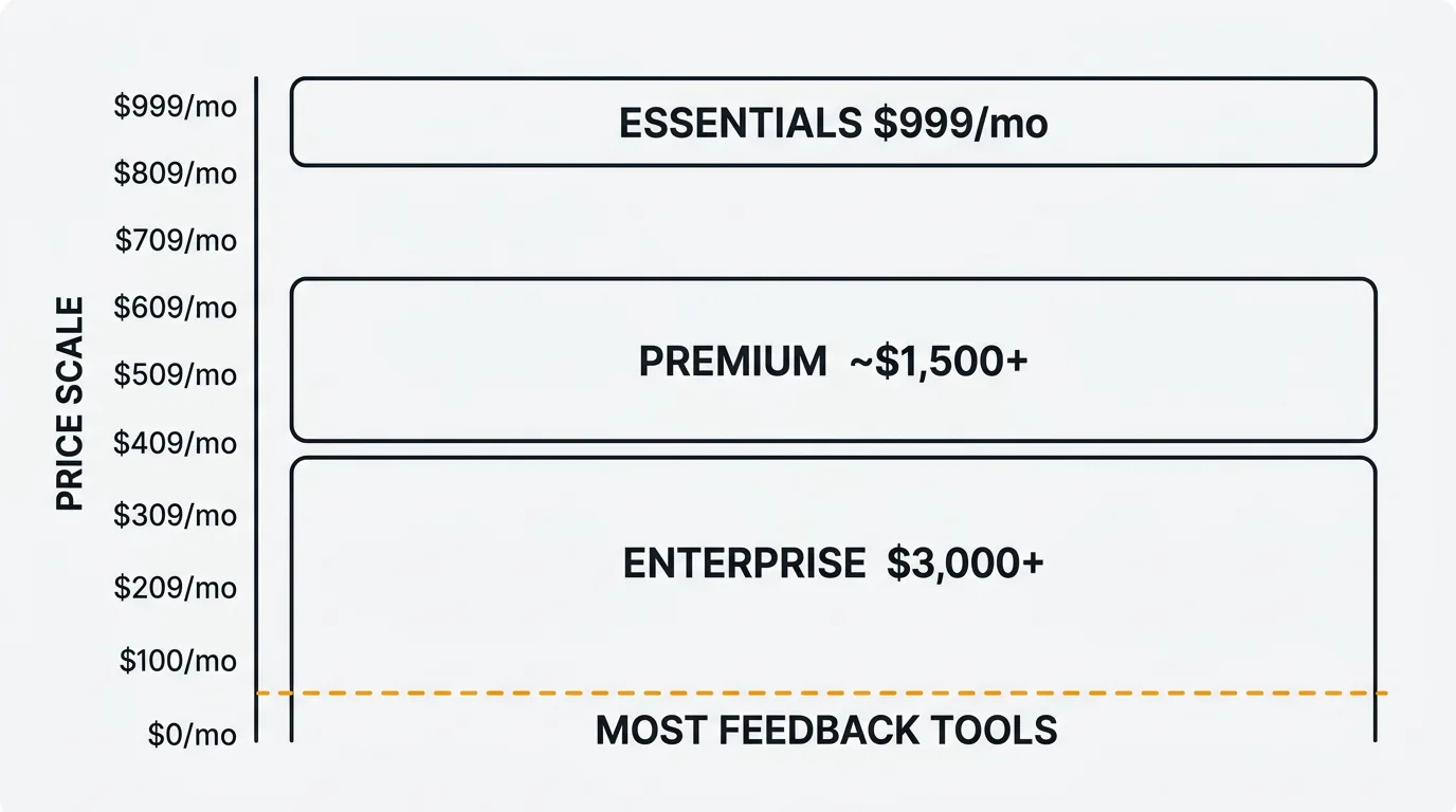 The $16,000/year starting point (~$1,333/mo) is the floor. Larger organizations with high feedback volume, advanced integrations (Salesforce, HubSpot), and enterprise security requirements will pay more. Annual billing is standard.